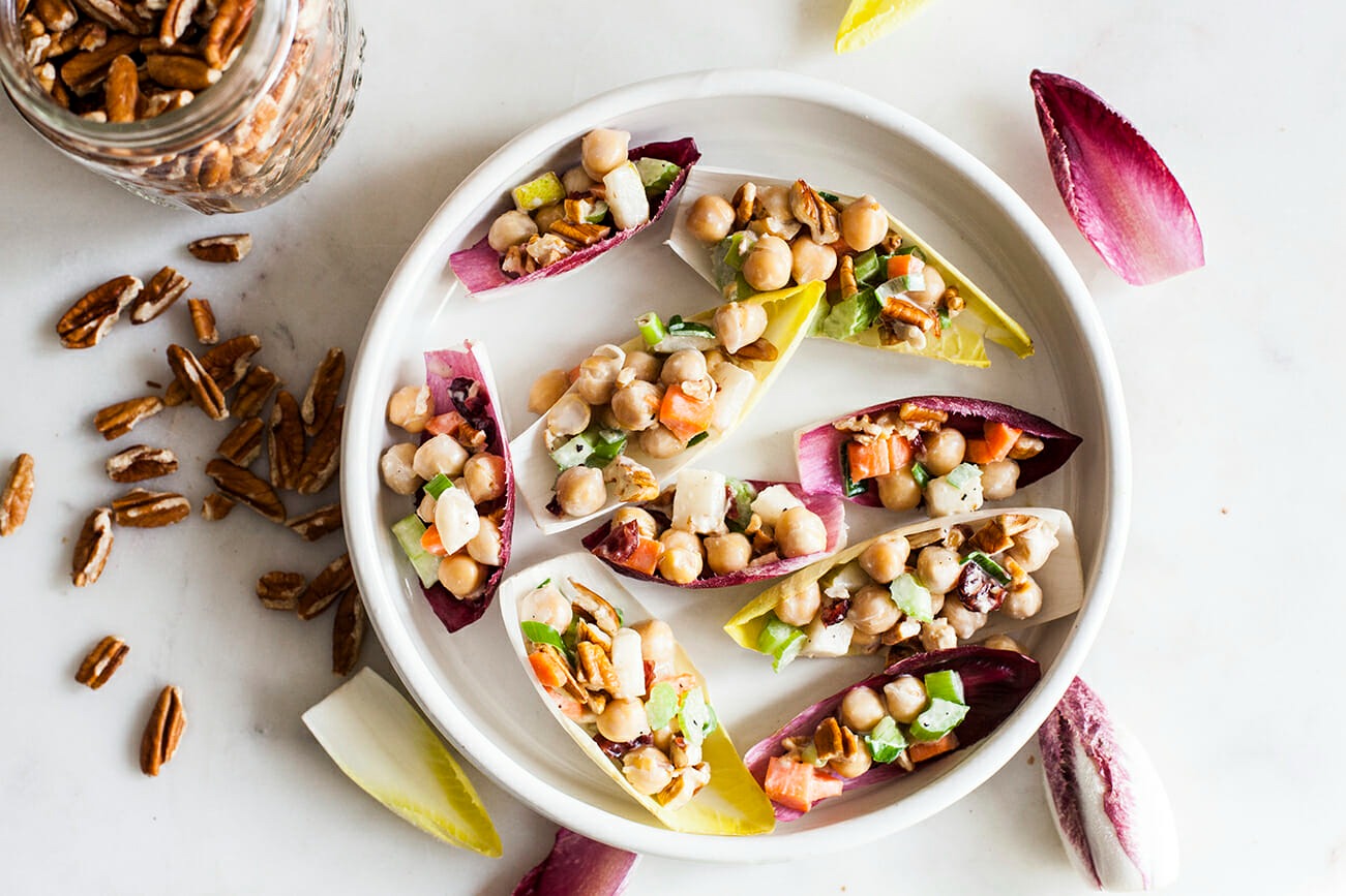 Creamy Chopped Chickpea Pecan Salad in Endive Cups